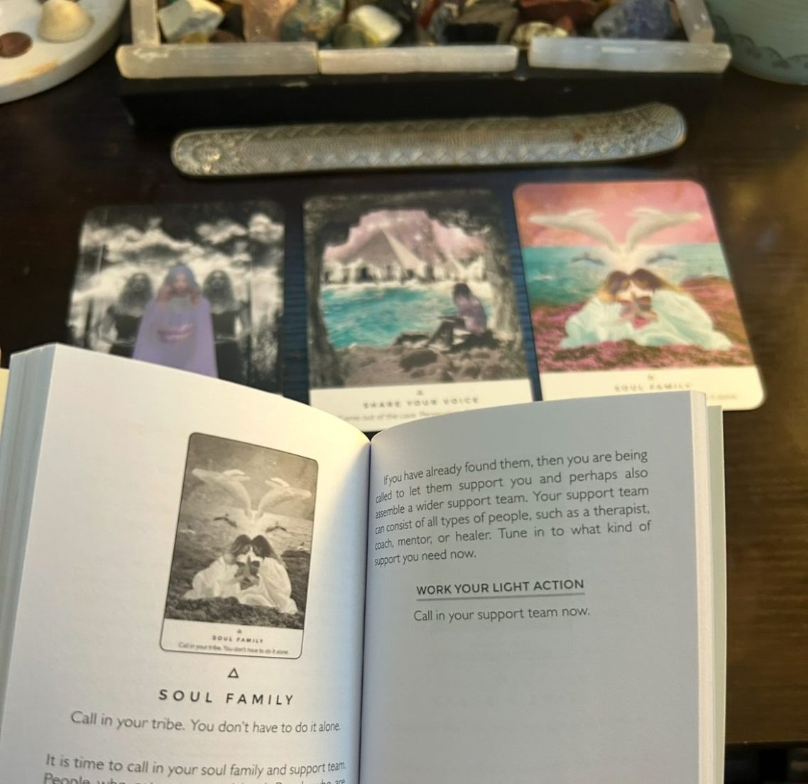 Oracle insight is spiritual guidance received through intuition, higher wisdom, or divine messages. Often delivered through oracle cards, meditation, prayer, or inner knowing.